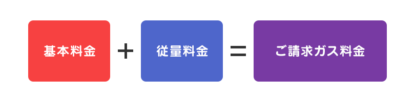 LPガスは地域によって料金体系が異なりますが、当社では主流な料金体系である二部料金制を採用しています。二部料金制とは下図のとおり、基本料金と従量料金からご請求金額を算出する料金制度です。